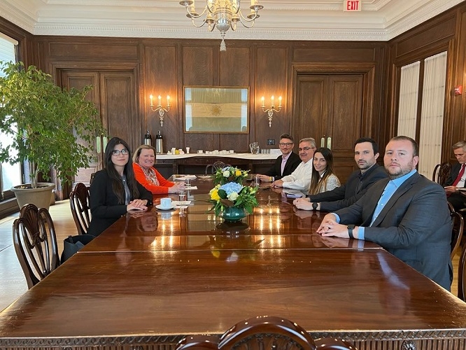 El mandatario provincial estuvo junto a los ministros de Economía, Alejandra Nazareno; de Industria, Comercio y Empleo, Lisandro Álvarez; el director del Banco Nación, Francisco Mercado; y el asesor Fernando Ávila, quienes lo acompañan en la misión comercial e institucional en EE.UU.
