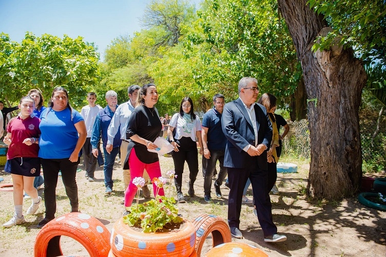 Allí, recorrió las obras que se concretaron en el establecimiento, donde se construyó una sala nueva para la contención de niños y niñas del Jardín de Infantes, además de la creación de un área de jardín forestada para el esparcimiento de los más pequeños.