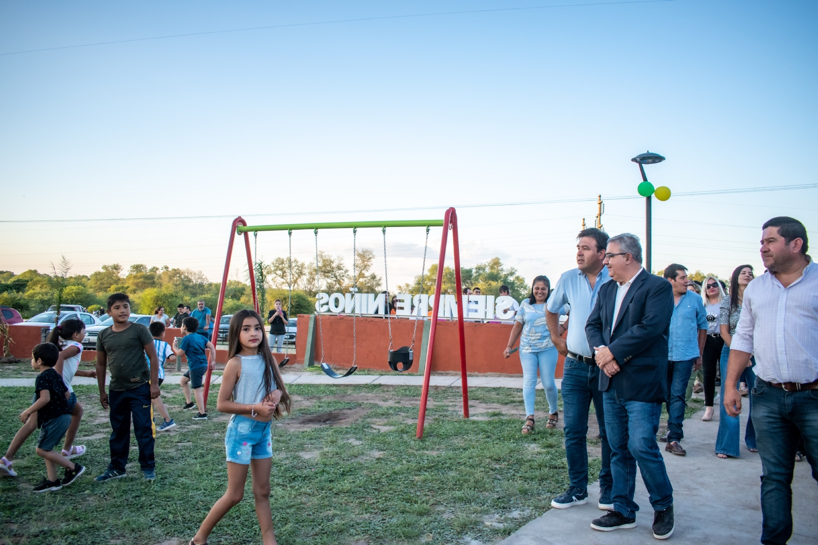 El Gobernador también dejó inauguradas las obras en la Plazoleta “Siempre Niños” de La Calera donde se ejecutaron trabajos de construcción de 120 metros cuadrados de caminería, acceso y cerramiento perimetral, instalación de juegos infantiles, iluminación interior Led, parquización y red de agua para riego.