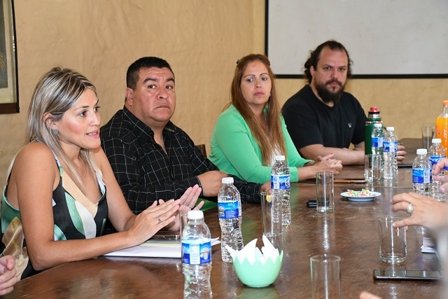 La titular del Ministerio de Educación, Andrea Centurión acompañada por el secretario de Control y Gestión del Ministerio de Infraestructura y Obras Civiles, Gustavo Jordán, mantuvo una reunión con los diputados del oficialismo para brindar detalles sobre el estado de obras en ejecución y refacciones de los edificios escolares de la provincia.