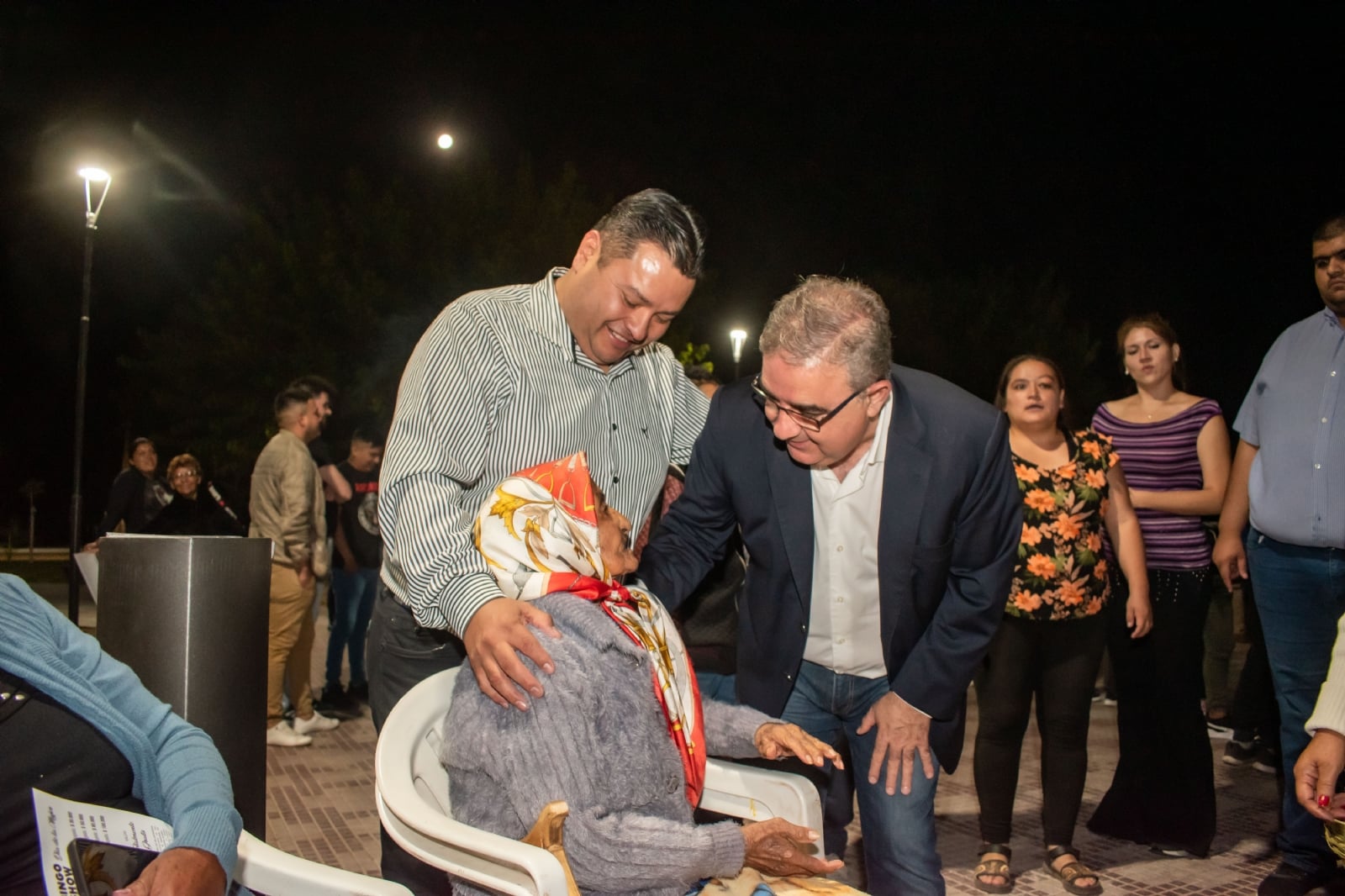 La obra de la plaza “El Encuentro” tuvo aportes del Gobierno Provincial por $10 millones de pesos para su ejecución. Cuenta con 3.400 metros de mosaico vereda, instalación eléctrica subterránea en su totalidad, 100% de iluminación Led, escenario de 120 metros cuadrados, 45 bancos de madera con hierro y 10 bancos de hormigón, 15 basureros, sistema de riego subterráneo, pérgola de 15x6, juegos infantiles, 5 tótems con esgrafiado en cemento, maceteros y el centro de la plaza tiene una “H” con fuente de agua.