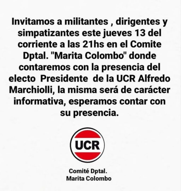 Cabe recordar que Alfredo Marchioli fue electo presidente de la UCR el dia domingo 2 de abril de este año, en la internas partidarias en representacion de la linea "Ahora, el Radicalismo", en la compusa contra Natalia Herrera, "Renovación y Cambio Radical".