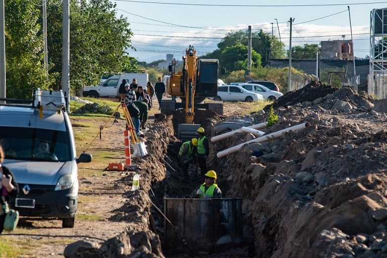 La obra, que lleva un avance del 10% y se estima estará finalizada a finales de agosto, comprende la realización de una red de desagües cloacales que incluyen extensión de red y conexiones domiciliarias.