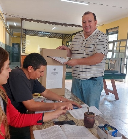 El candidato a vice presidente del comité departamental de FME de la UCR por la lista Verde Renovación y Cambio Radical, Daniel Vildoz, emitió su voto en la escuela N°265 de Piedra Blanca, donde el desarrollo de los comicios son normales.