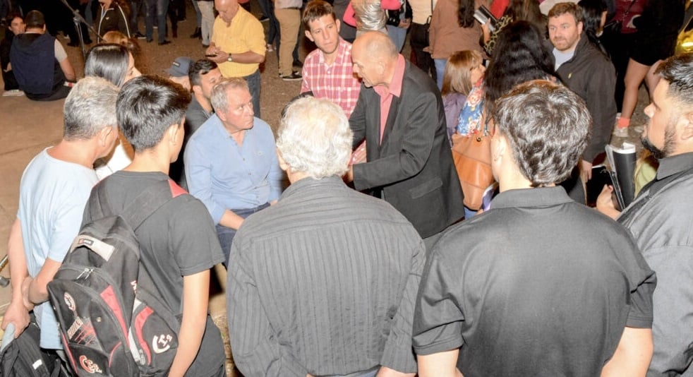 Junto al mandatario estaba también el concejal Juan Pablo Dusso, miembro del Concejo Deliberante capitalino, que activamente tomó parte de la convocatoria.
