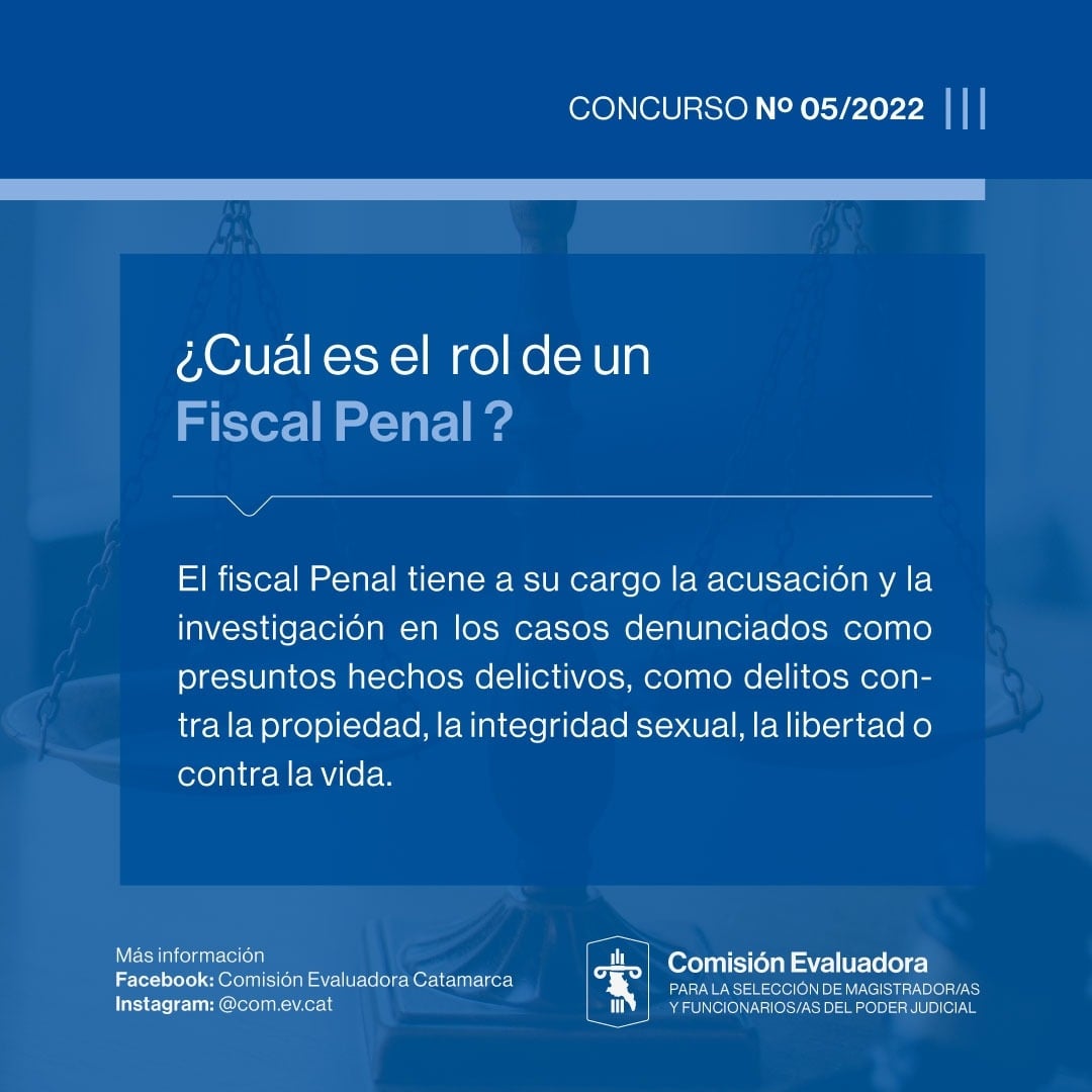 El fiscal Penal tiene a su cargo la acusación y la investigación en los casos denunciados como presuntos hechos delictivos, como delitos contra la propiedad, la integridad sexual, la libertad o contra la vida.
