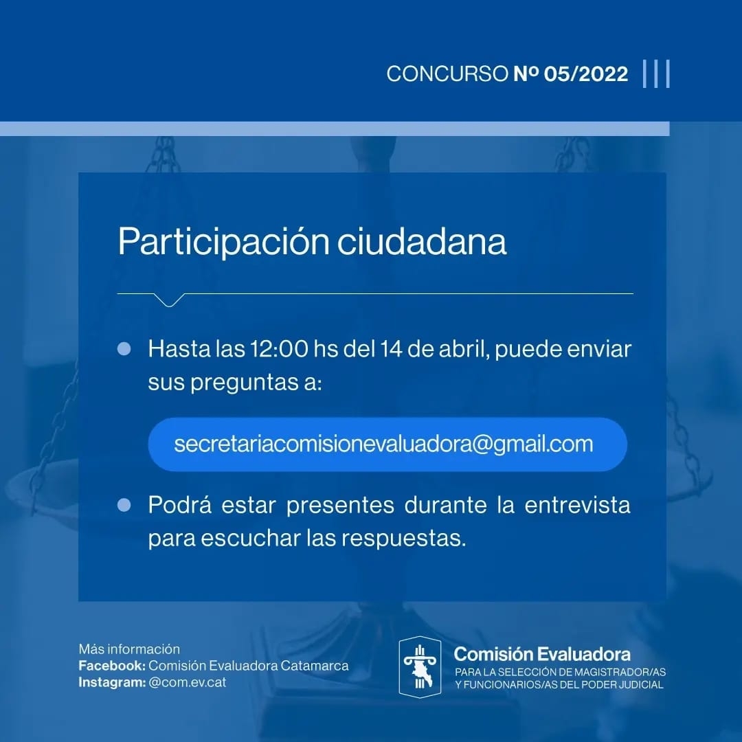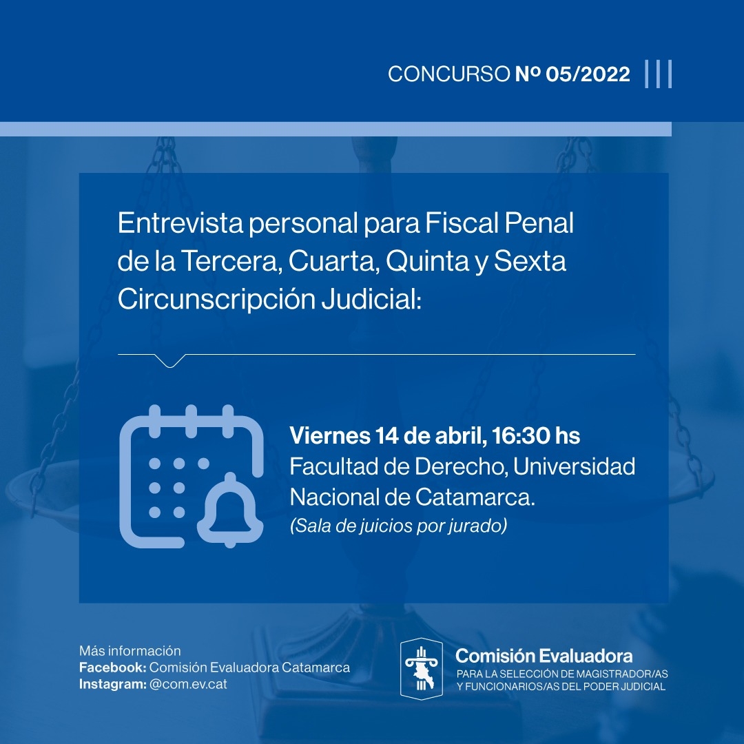 Esta última instancia se llevará a cabo, el viernes 14 de abril, a las 16.30, en la Facultad de Derecho de la Universidad Nacional de Catamarca, en la Sala de Juicios por Jurado.