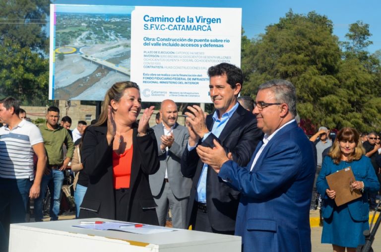 El gobernador Raúl Jalil, junto al ministro del Interior, Wado de Pedro, dejaron oficialmente inaugurado el Puente en el Camino de la Virgen, una obra muy requerida por los ciudadanos del Valle Central que circulan diariamente entre Valle Viejo y Capital.