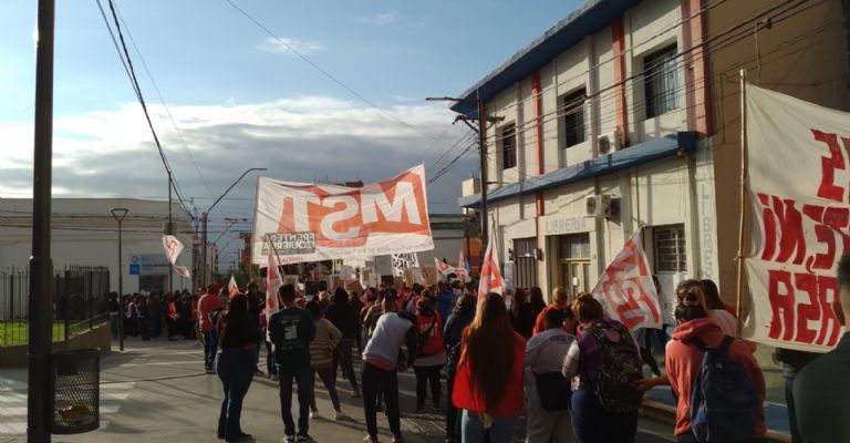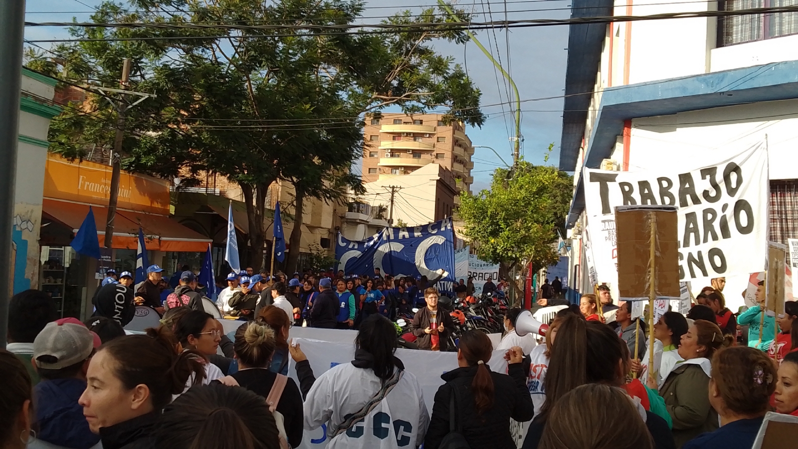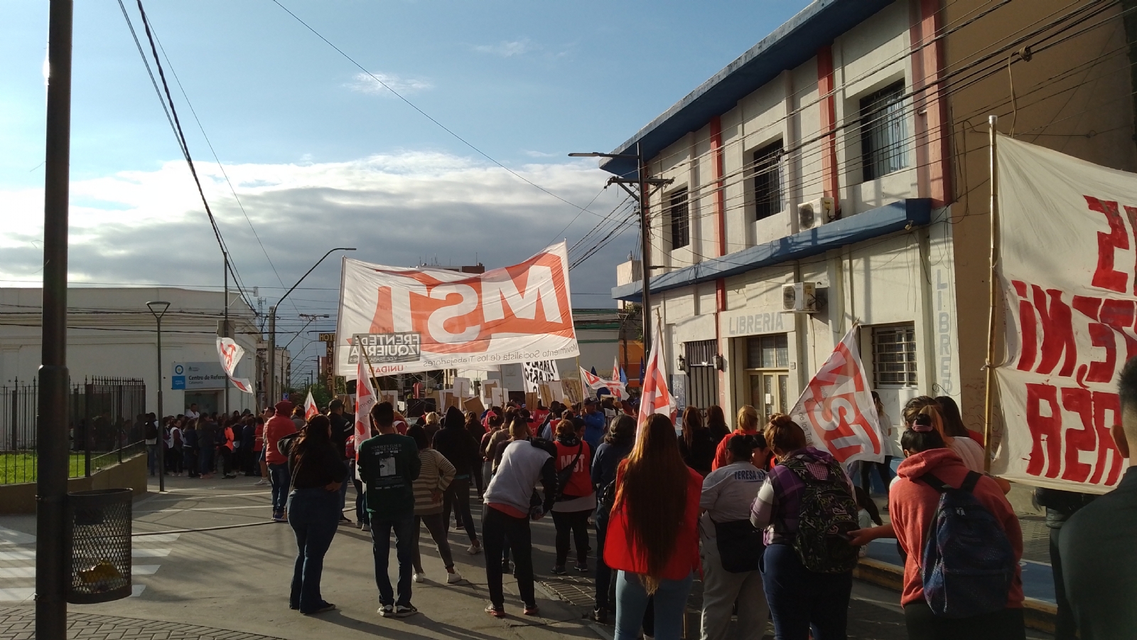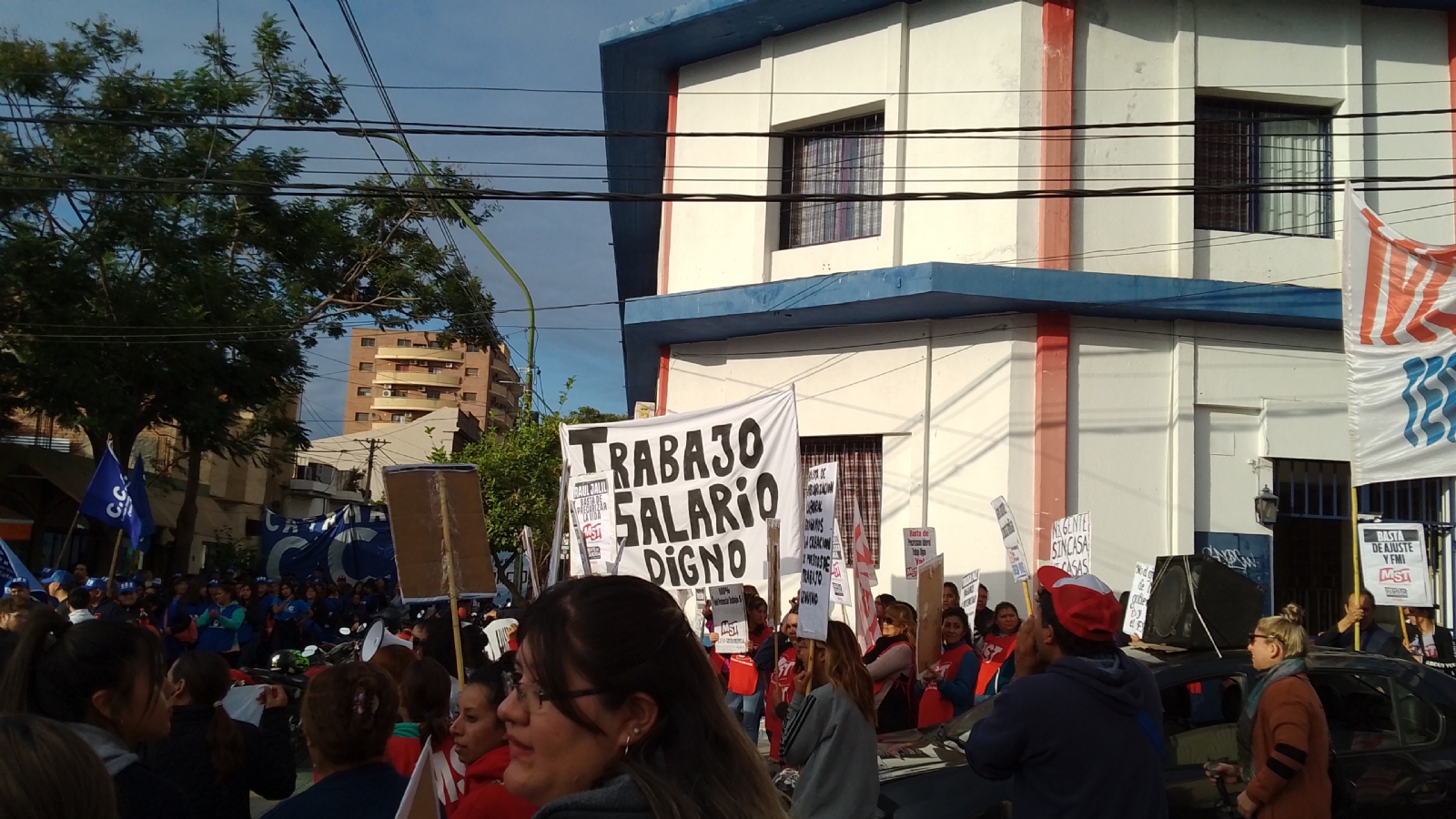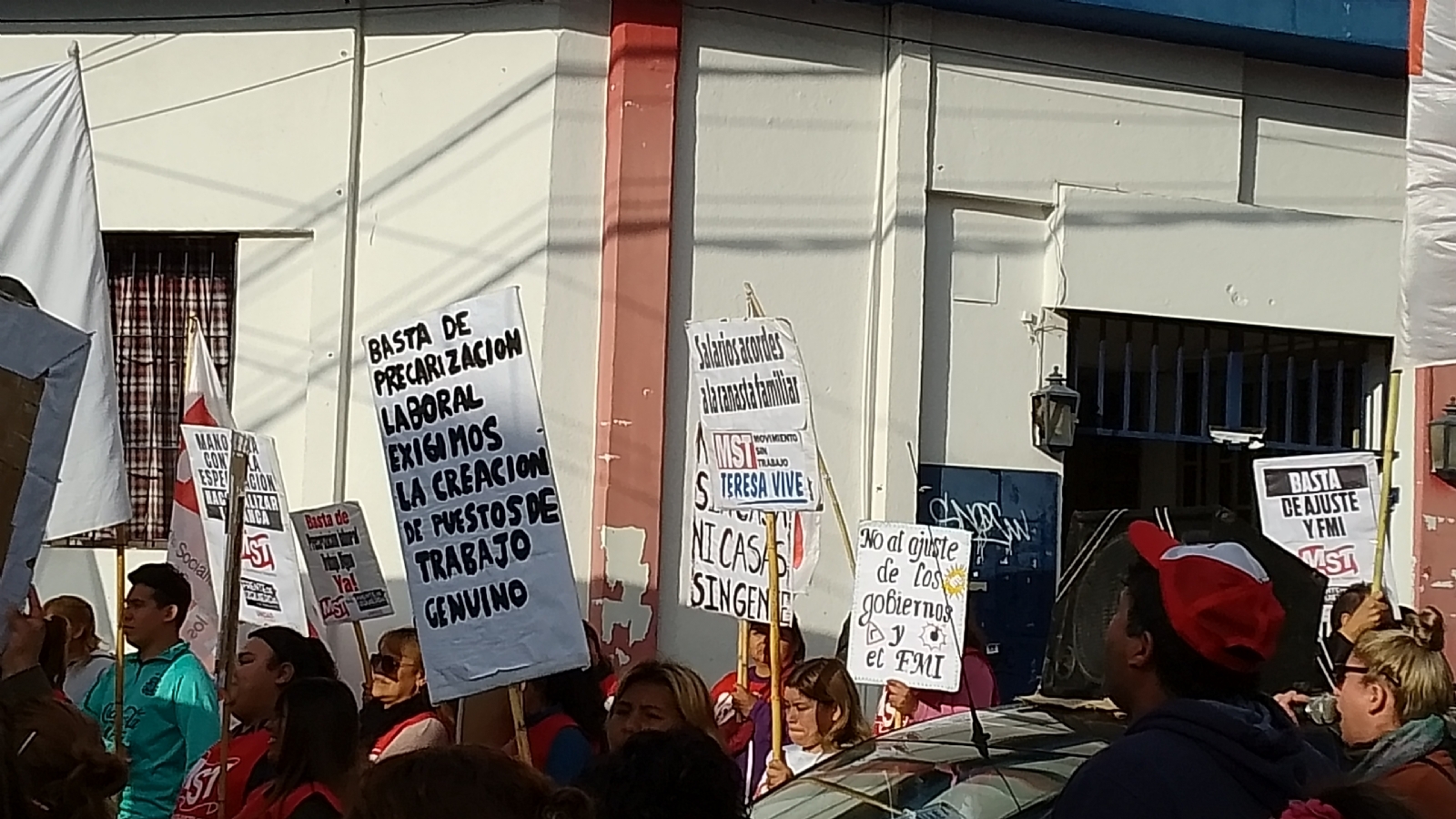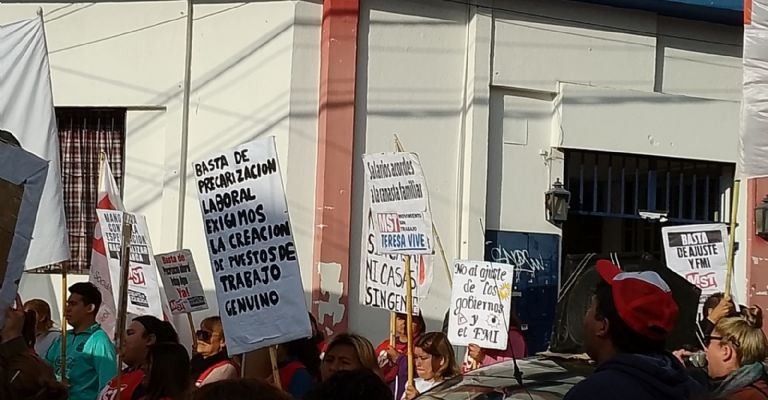 En este momento se lleva adelante una manifestación en la intersección de Ayacucho y República, organizada por agrupaciones sociales de izquierda. En este sentido, un grupo de personas que colman la esquina se manifiestan ante la necesidad de un trabajo y salario digno, sumando consignas como "No al ajuste" o "Fuera el FMI".