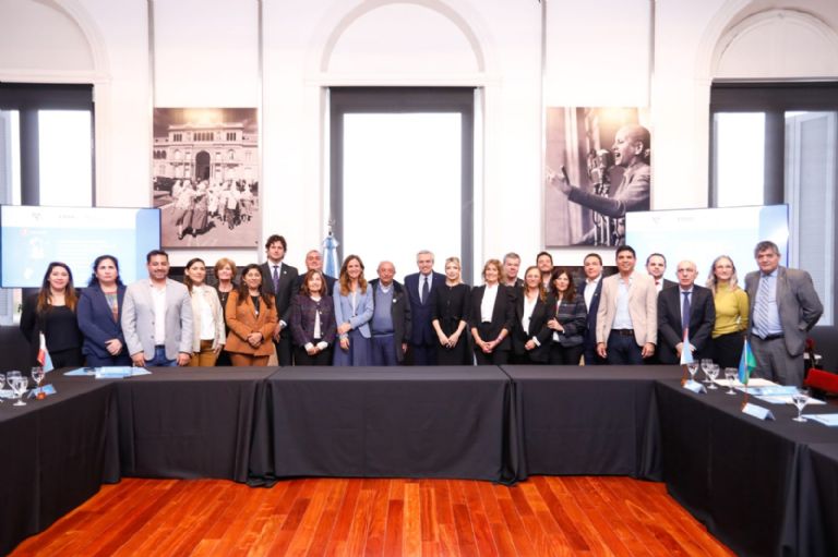 El presidente Alberto Fernández encabezó en el Salón de las Mujeres de Casa Rosada, junto a la primera dama y presidenta honoraria de la Fundación Banco Nación, Fabiola Yañez, y la ministra de Desarrollo Social, Victoria Tolosa Paz, el lanzamiento del programa Casa Amor, que estipula la creación de 24 espacios de contención social, sanitaria y educativa en todo el país.