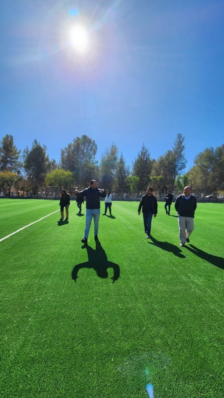 El intendente CPN Juan Pablo Sánchez, recorrió los nuevos espacios deportivos con superficie de césped sintético de Santa María, junto a la senadora, CPN Érica Inga; el secretario General, Prof. Antonio Camposano; el secretario de Turismo, César Mamaní; la secretaria de Planificación, Coordinación y Control, Arq. Laura Palacios; secretaria Privada, Antonella Albani; el coordinador de Comunas, Sergio Quevedo y la jefa de la Juventud, Elizabeth Álvarez.