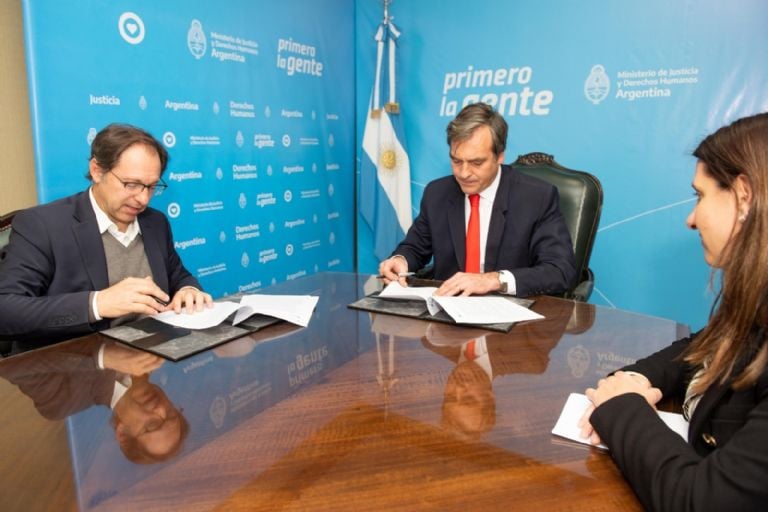 El ministro de Justicia y Derechos Humanos de la Nación, Martín Soria, y el ministro de Gobierno, Justicia y Derechos Humanos de Catamarca, Juan Cruz Miranda, rubricaron un convenio de colaboración que busca fortalecer la estructura institucional de la provincia mediante el diseño, desarrollo y ejecución de políticas públicas destinadas a la readaptación social de las personas en conflicto con la ley penal.