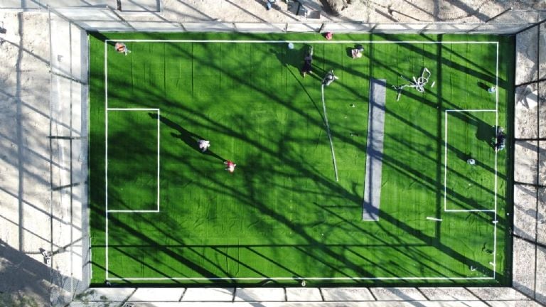 En los últimos días, la empresa especializada en su colocación inició con el estiramiento de los paños que recubren la superficie, además de la instalación de las correspondientes líneas de demarcación del campo de juego. En este sentido, la cancha de fútbol 5 del Complejo Yokavil se encuentra casi lista. En los próximos días continuarán con las canchas de fútbol ya listas para la colocación del césped sintético ubicadas en los barrios Norte, Fuerte Quemado y El Cerrito.