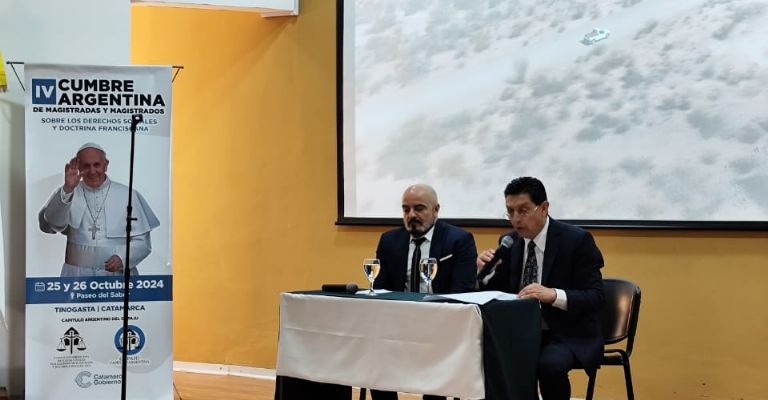 Tinogasta, 26/10.- El IV Encuentro Nacional del Capítulo Argentina del Comité Panamericano de Juezas y Jueces por los Derechos Sociales y la Doctrina Franciscana (COPAJU), celebrado en Tinogasta, Catamarca, cerró este sábado con una contundente defensa del derecho a la protesta, el rechazo a la baja de la edad de punibilidad y el llamado a ejercer una justicia más humanitaria, con la mirada del Papá Francisco como inspiración. Al igual que en la jornada de apertura, estuvo presente el gobernador de la provincia anfitriona, Raúl Jalil.