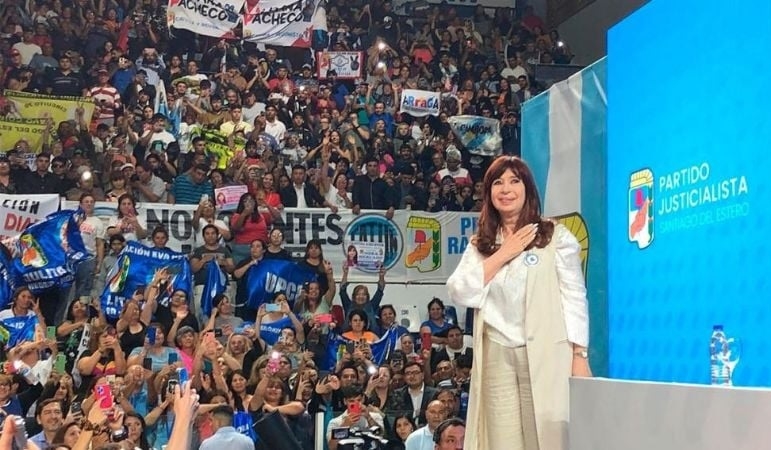 Pasadas las siete de la tarde, el Estadio de básquet del Club Quimsa, en el centro de la capital santiagueña, explotó de cánticos cuando ingresó CFK. Lo mismo afuera, sobre las calles Corrientes e Independencia, repletas de gente que miraba el acto organizado por el PJ provincial desde pantallas gigantes. Alrededor de 10.000 personas, según los organizadores. Santiago del Estero fue la primera jurisdicción en la que CFK encabezó un acto como autoridad del PJ, después de algunos recorridos en el conurbano bonaerense. “No me van a hacer arrepentir de nada de lo que hice", dijo sobre el fallo por la causa de Vialidad. Y agregó algo que ya había dicho en la semana: "El castigo que me quieren imponer, al lado de otros que sufrieron quienes ya no están, quienes continúan desaparecidos, el precio es bastante poco y estoy dispuesta a pagarlo”. Una frase con la potencia suficiente para levantar a todos de sus asientos.