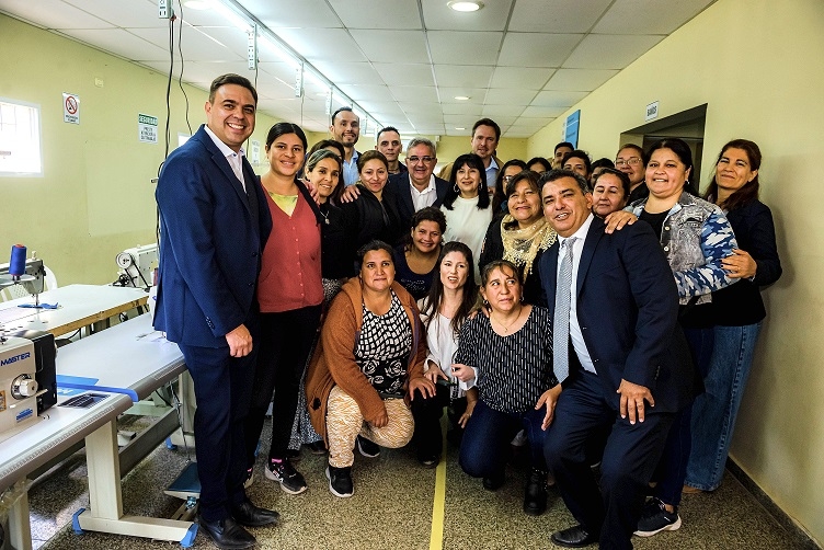 Luego de la firma, el gobernador Jalil, junto al intendente Barot y al ministro Caria, saludaron a las talleristas y les desearon éxito en esta primera instancia de instrucción que se realizará en 4 meses abordándose temas como la confección industrial, moldería industrial, mantenimiento de máquinas de coser industriales y familiares y administración, entre otros puntos.