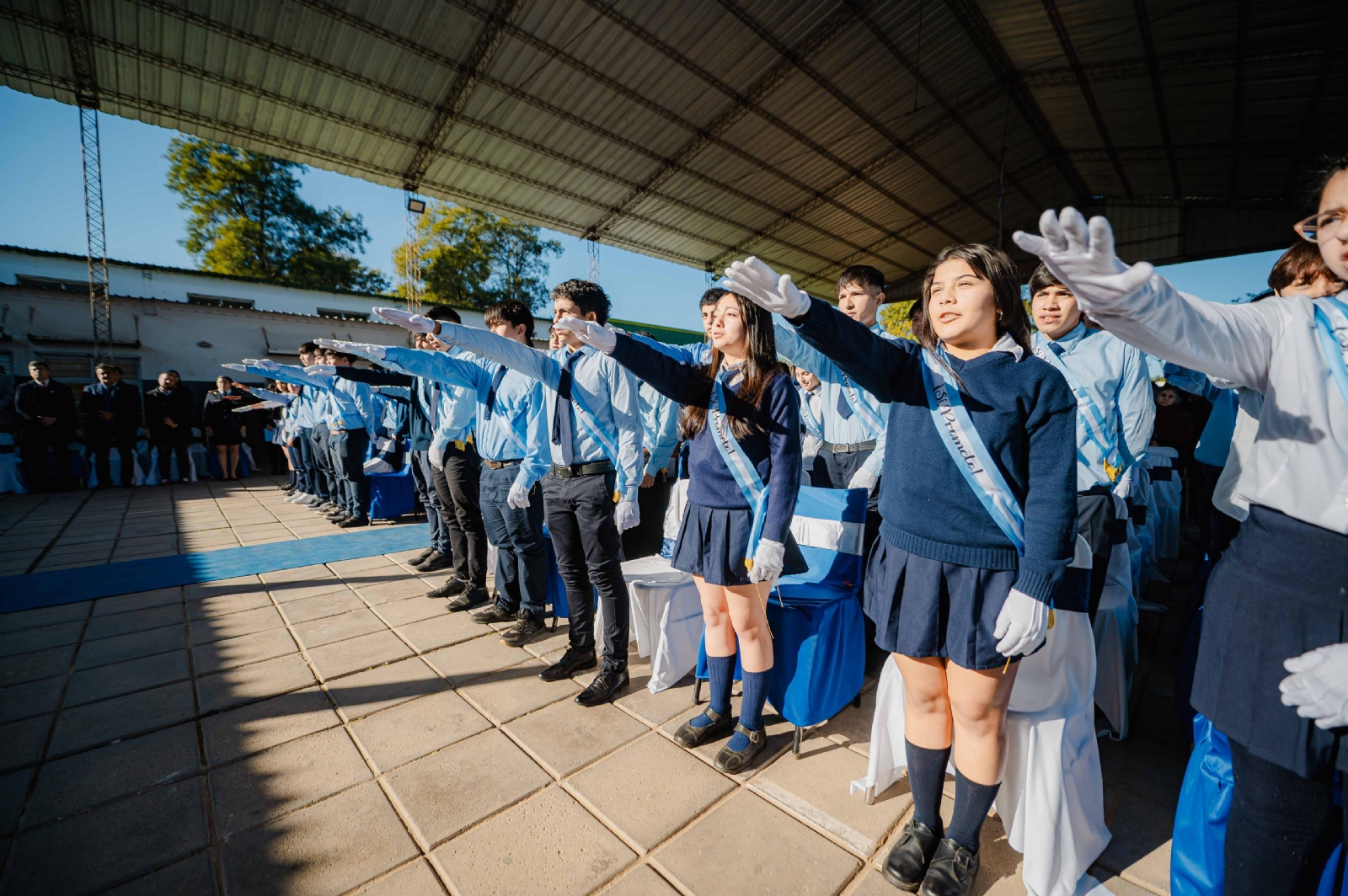 El gobernador Raúl Jalil visitó Los Altos y participó en el acto de promesa de lealtad a la bandera realizado en la Escuela Secundaria N°24 , donde tomó juramento a los alumnos de sexto año, junto al intendente Raúl Barot.