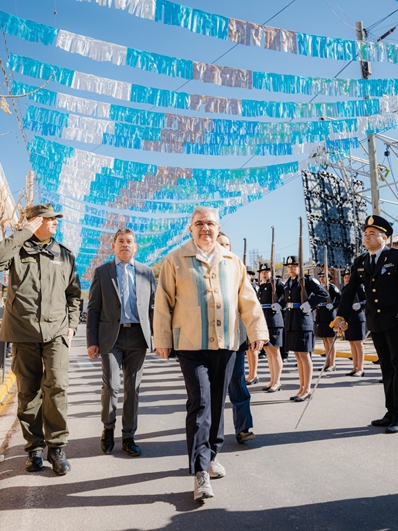 Como parte de las actividades conmemorativas, el mandatario provincial asistió a la tradicional misa en honor al santo patrono San Juan Bautista, ceremonia que también sirvió para rendir homenaje al aniversario fundacional de la ciudad. Tras el acto protocolar, se realizó el tradicional desfile cívico con la participación de instituciones escolares, organismos públicos y vecinos de la localidad.