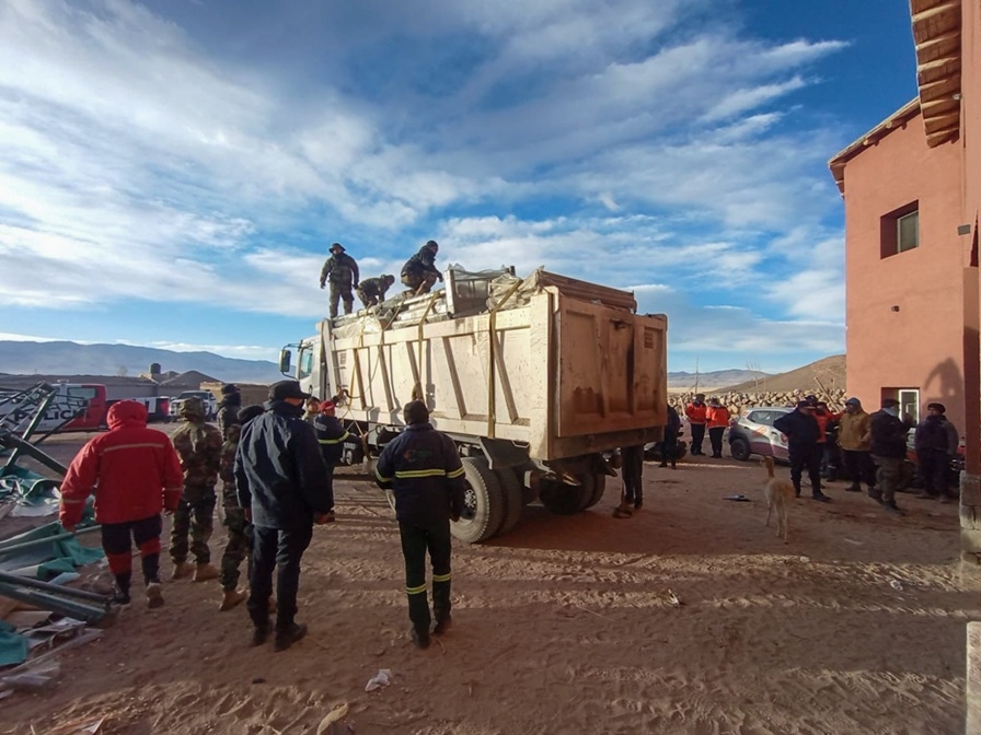 Durante este sábado se reforzó la asistencia con la llegada de más equipos y recursos. Camiones de Vialidad arribaron al lugar con colchones, cuchetas y otros elementos de primera necesidad para las familias damnificadas. También se sumaron al operativo equipos de Aguas de Catamarca.