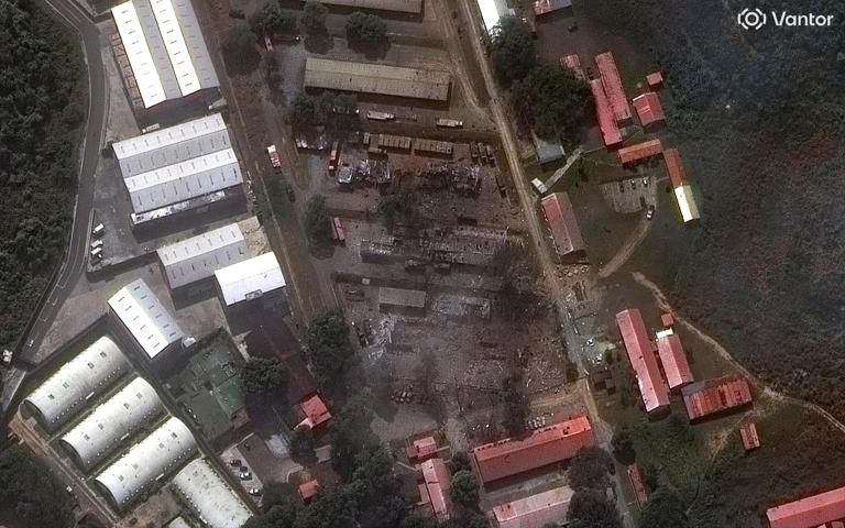 Las imágenes del “antes y después”, difundidas el domingo por la empresa de tecnología espacial Vantor —con sede en Colorado y anteriormente conocida como Maxar Intelligence—, muestran que al menos cinco edificios dentro del complejo fueron completamente destruidos. La comparación se realizó entre capturas satelitales tomadas el 22 de diciembre y el 3 de enero, donde se observan claramente estructuras colapsadas y zonas ennegrecidas compatibles con explosiones o incendios de gran intensidad.